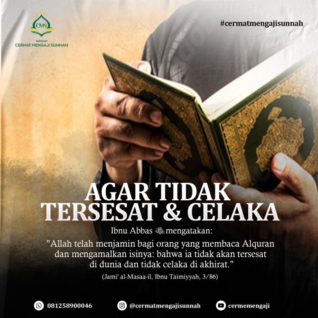 “Lalu barang siapa yang mengikut petunjuk-Ku, ia tidak akan sesat dan tidak akan celaka”. (QS. Thaha: 123) (Atsar shahih diriwayatkan di dalam kitab Mushannaf Ibnu Abi Syaibah).