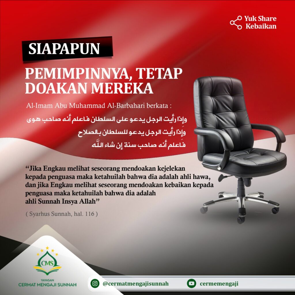 “Barang siapa yang mentaati aku sungguh ia telah mentaati Allah, dan barang siapa yang durhaka padaku sungguh ia telah mendurhakai Allah, barang siapa yang taat pada pemimpin sungguh ia telah taat padaku, dan barang siapa yang durhaka pada pemimpin sungguh ia telah durhaka padaku.” (HR. Muslim no. 1835)